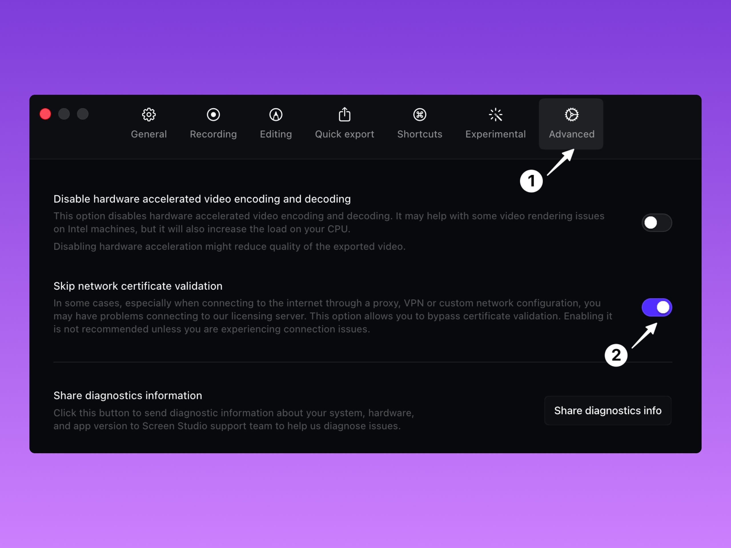- 互联网服务提供商(ISP)屏蔽了对 Screen Studio 服务器的访问