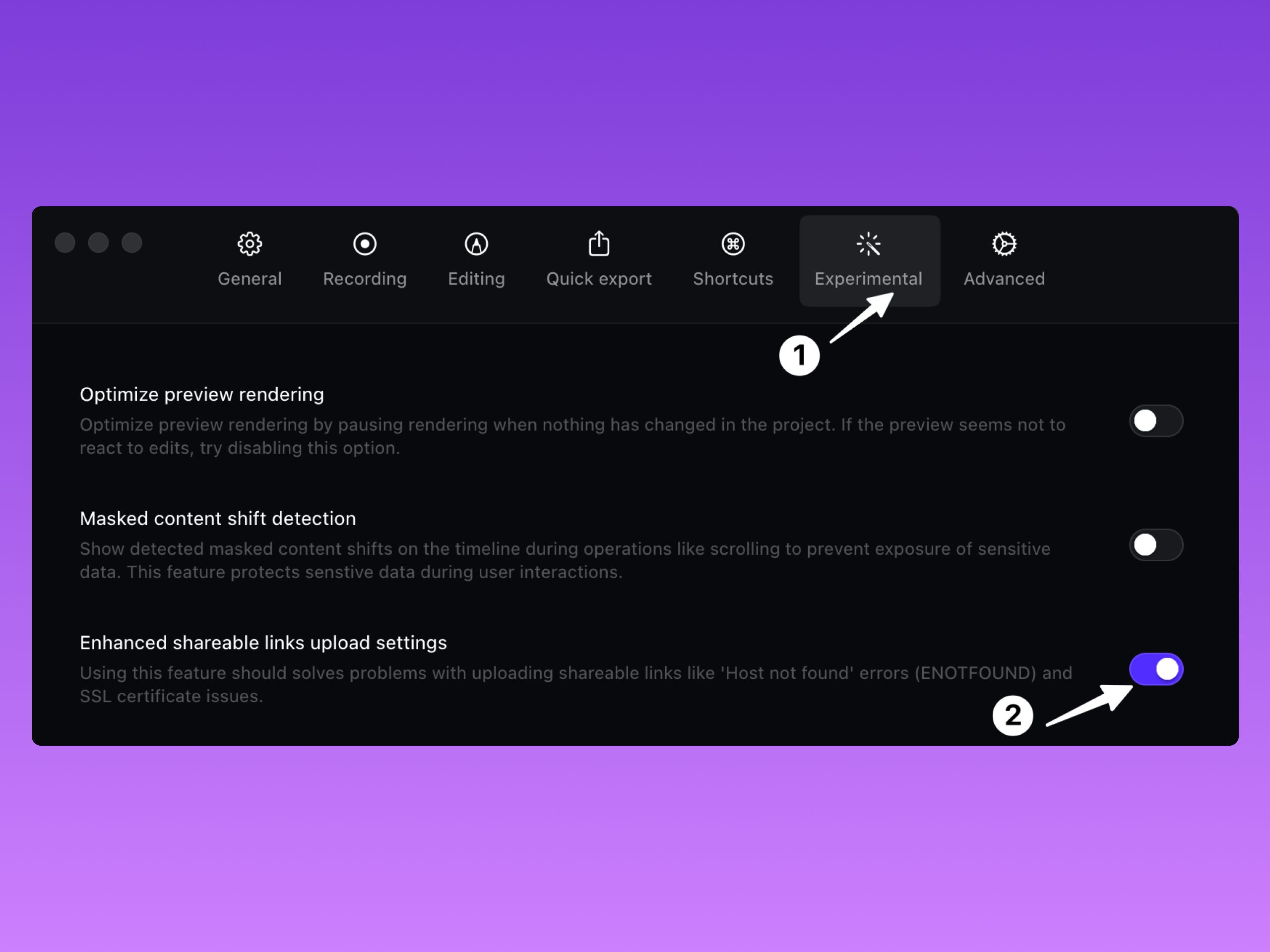 - 开启 Enhanced shareable links upload settings(增强可分享链接上传设置)