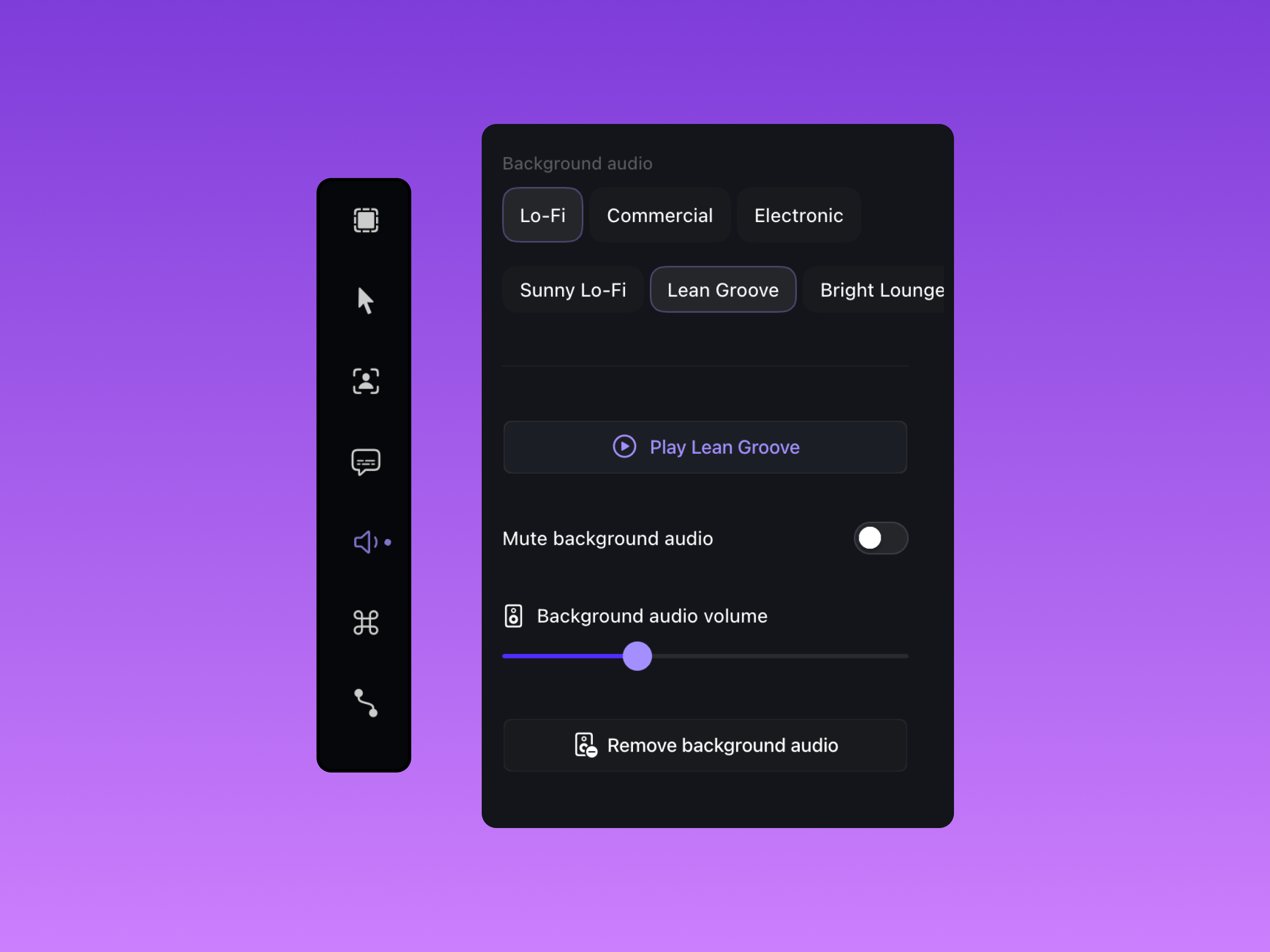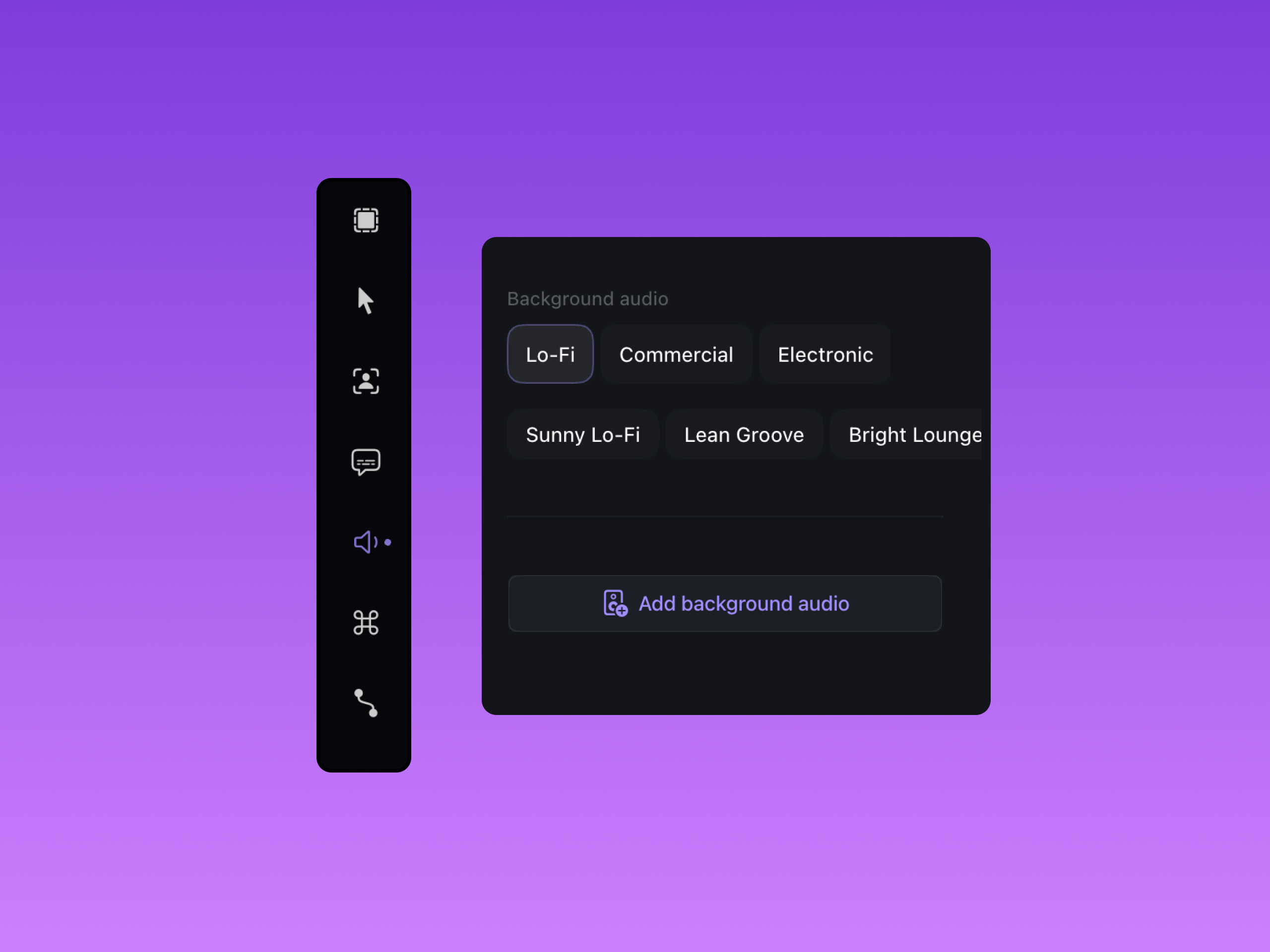如果您希望使用自己的音乐,只需点击添加背景音频(Add background audio),上传 MP4 或 MP3 格式的音频文件。这样您就可以使用符合您风格的音乐来个性化您的视频,提升整体观看体验。