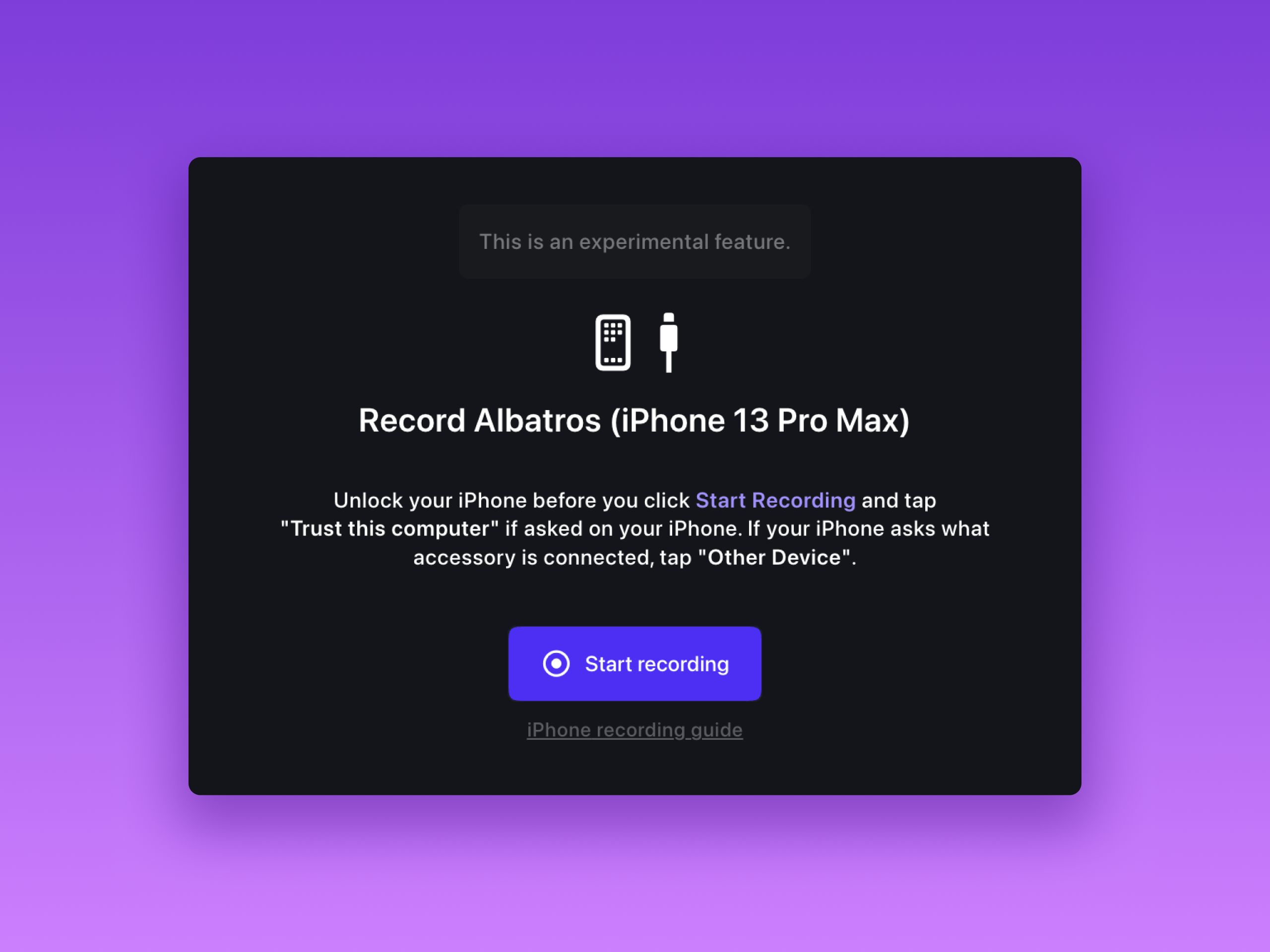 连接设备后,系统可能会弹出提示,询问您是否信任此设备,请点击 "信任此设备"。否则 Screen Studio 将无法录制它。