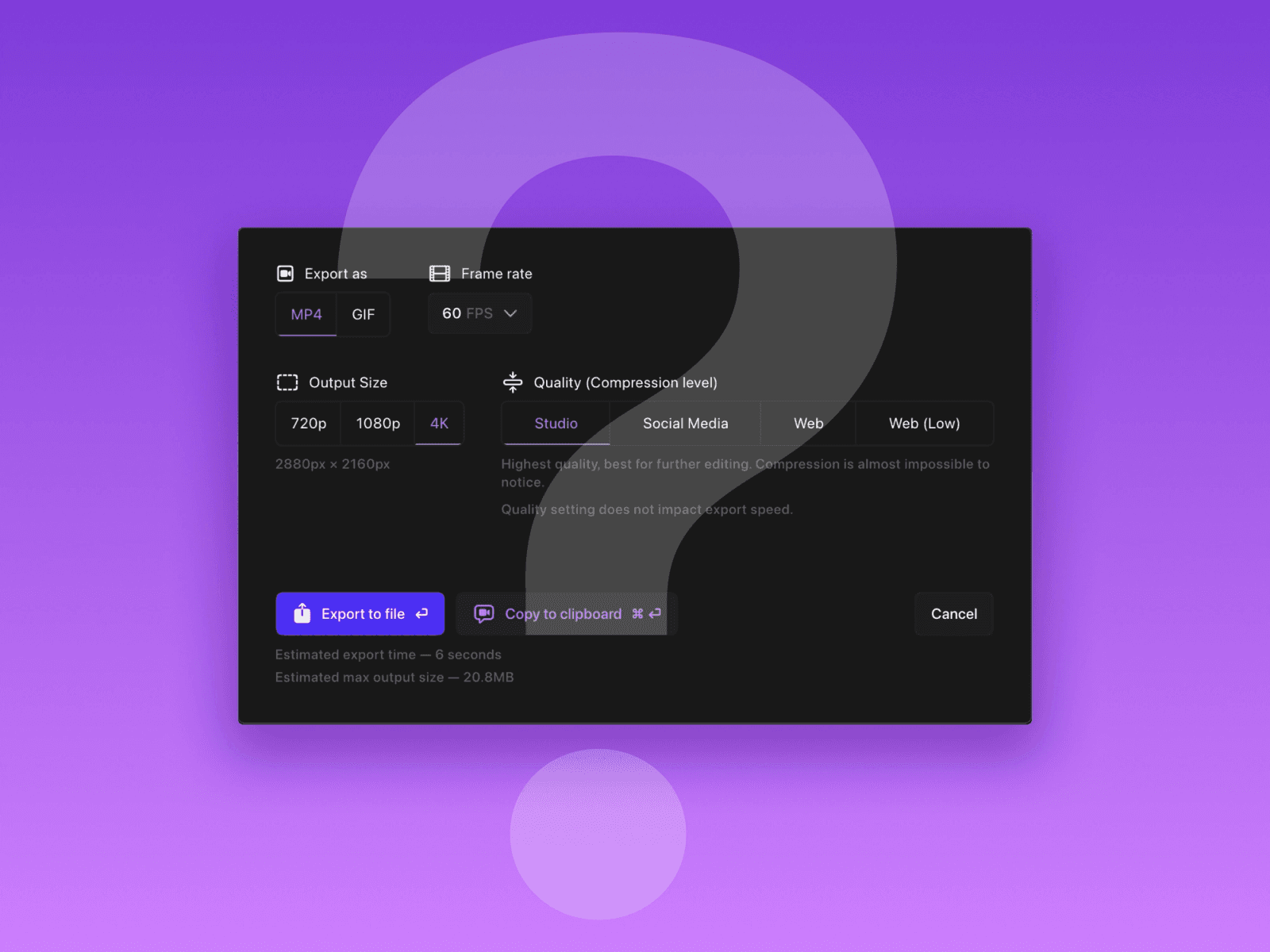 您可以先保存项目,以便稍后进行编辑或导出,也可以将其分享给其他 Screen Studio 用户。